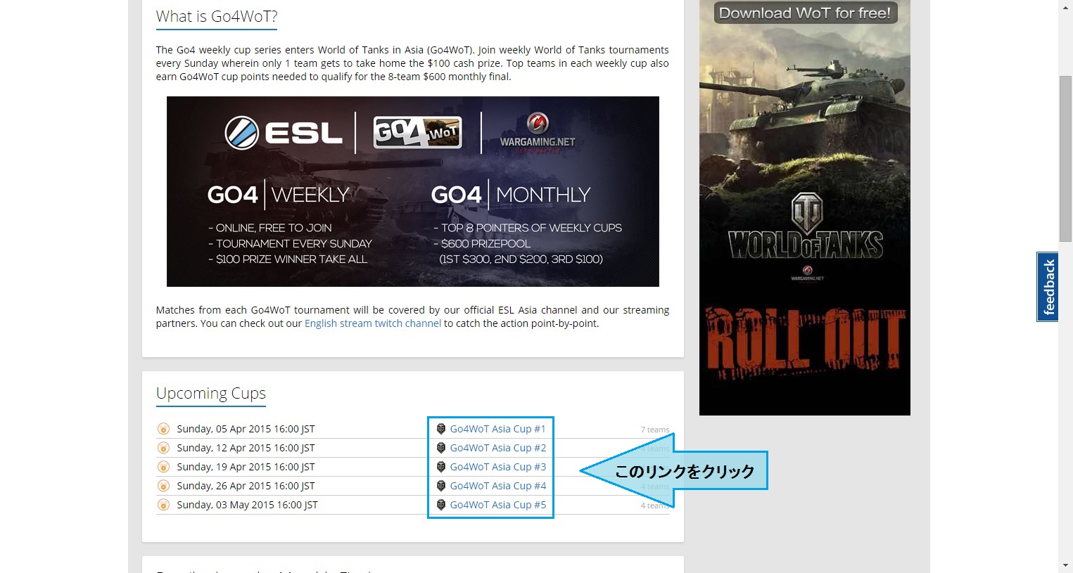 大会の日程ごとに表示されていますがどれをクリックしても大丈夫です。
