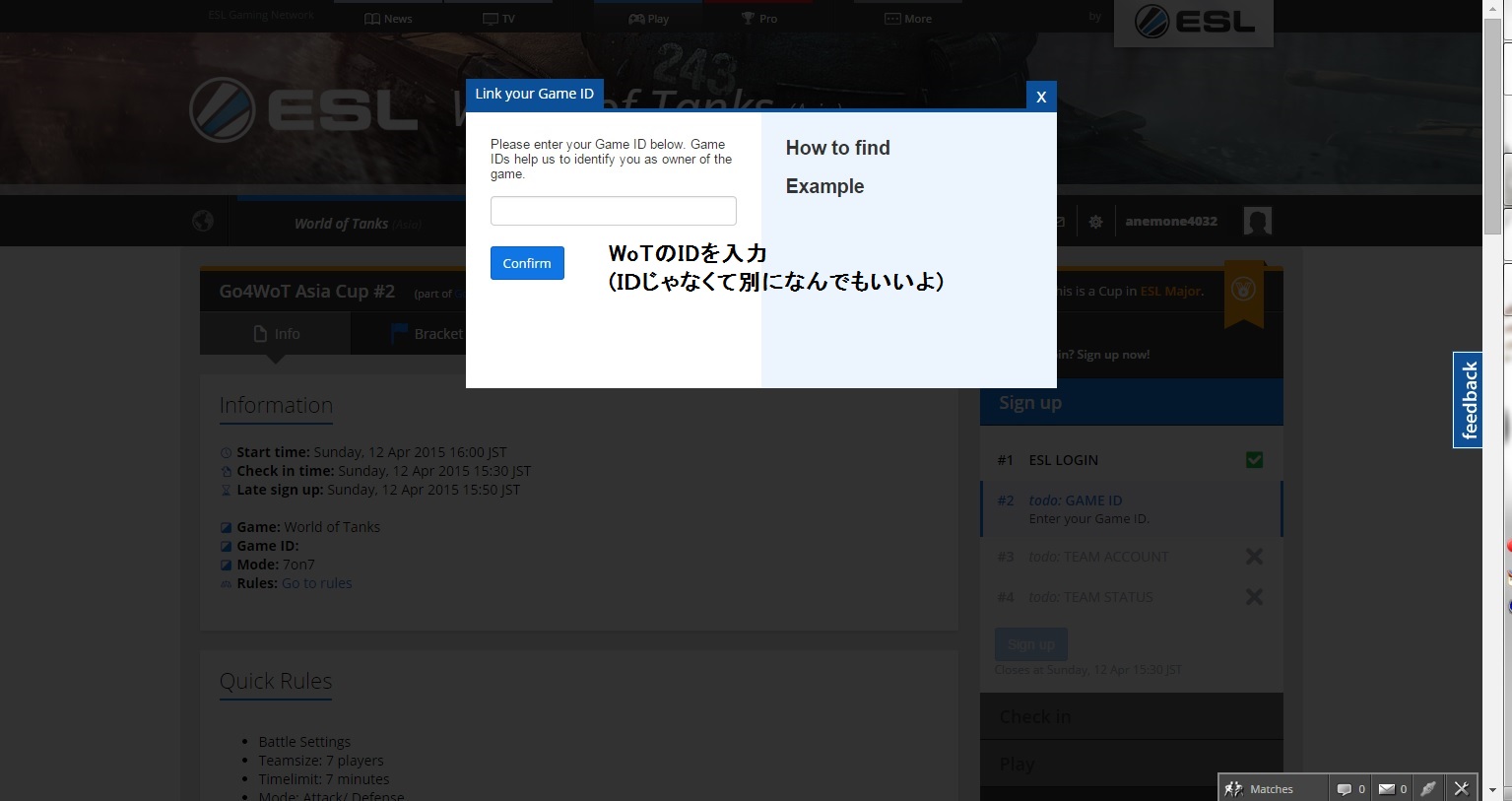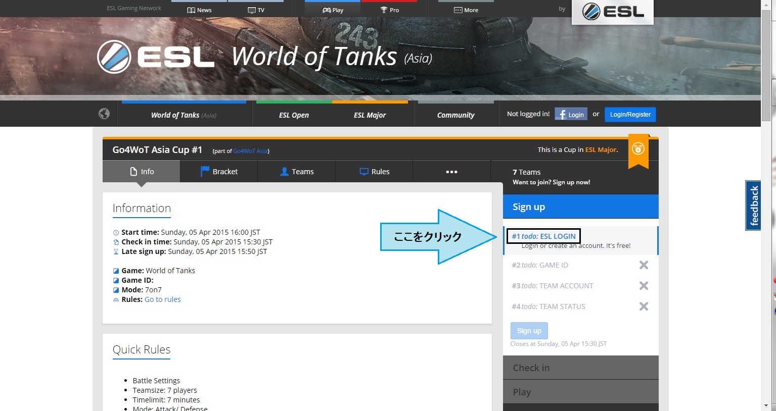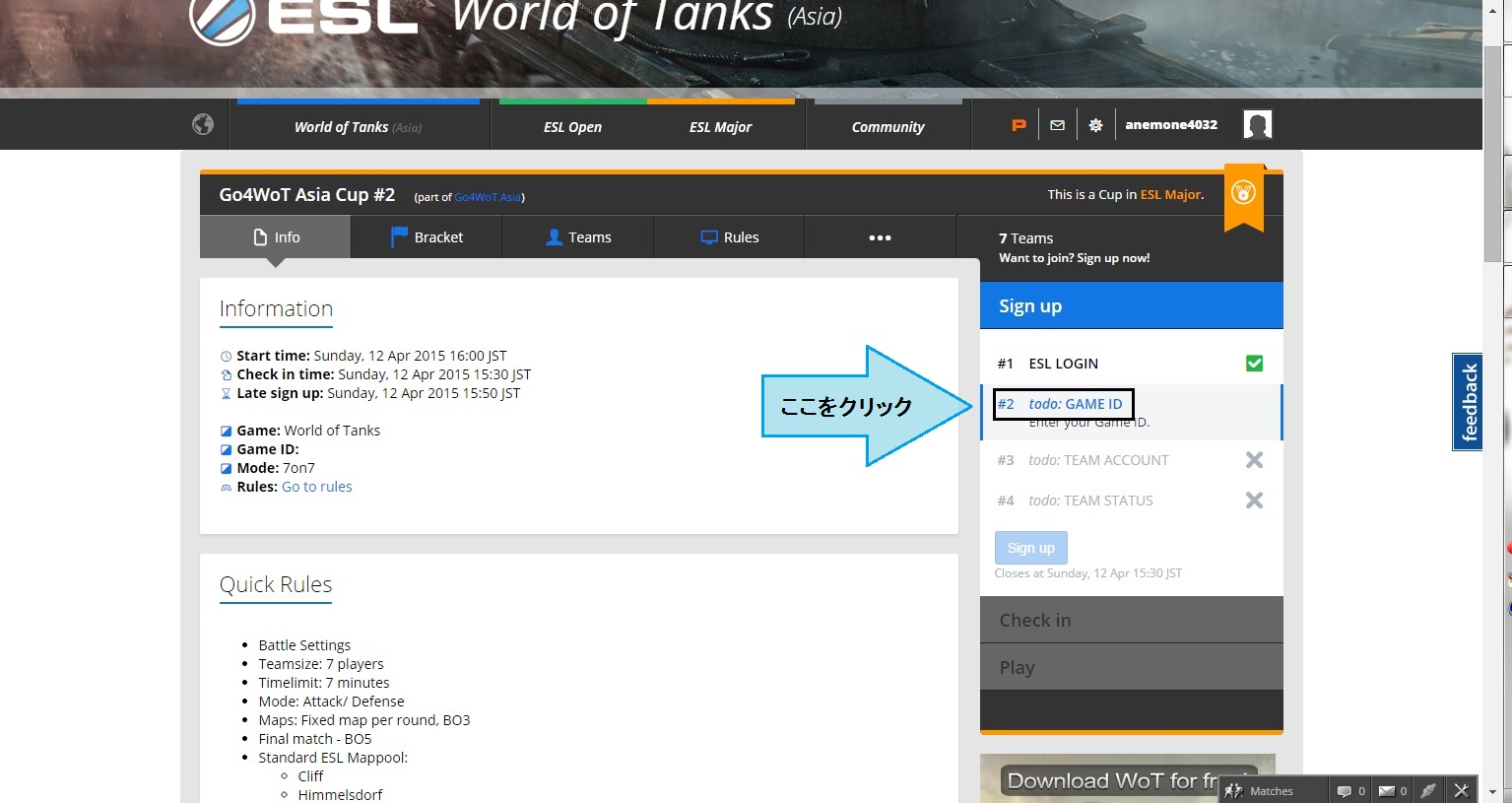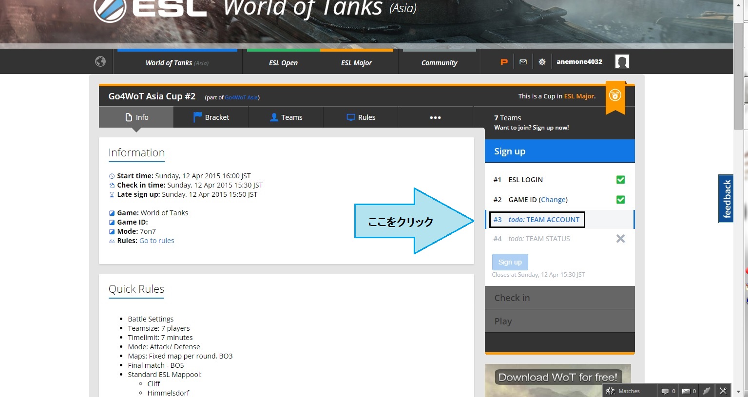 GAME IDが登録できたら次はTEAM ACCOUNTです。