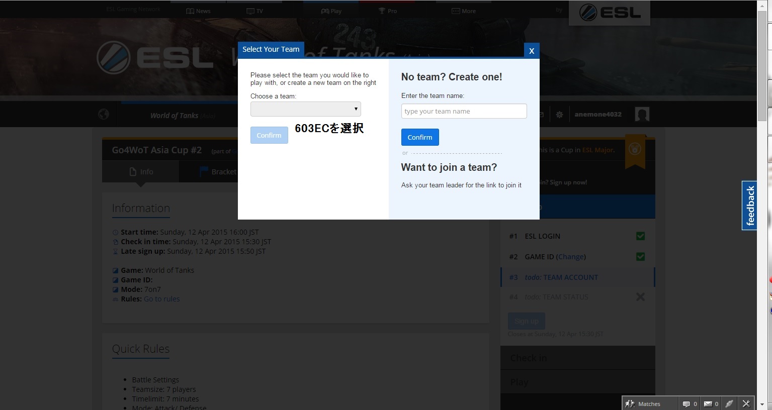 すでにチームに参加しているはずですので"603EC"が選択肢に表示されていると思います。